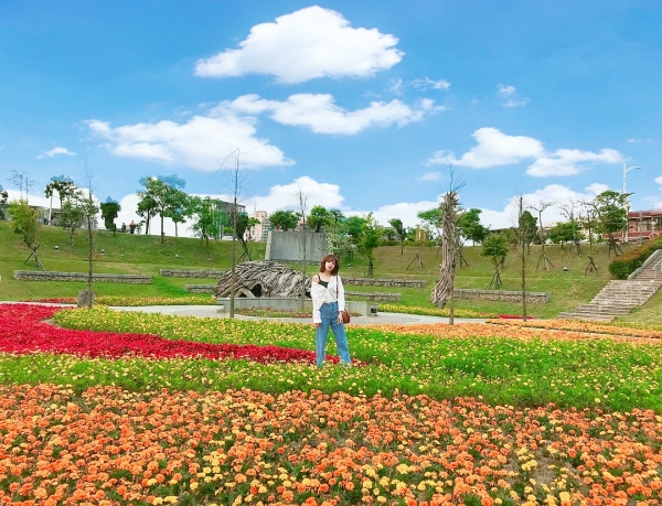 除了溜滑梯還有裝置藝術外,到了花季也會種植滿滿的花喔~繽紛又夢幻的花海也能在公園看的到囉~~