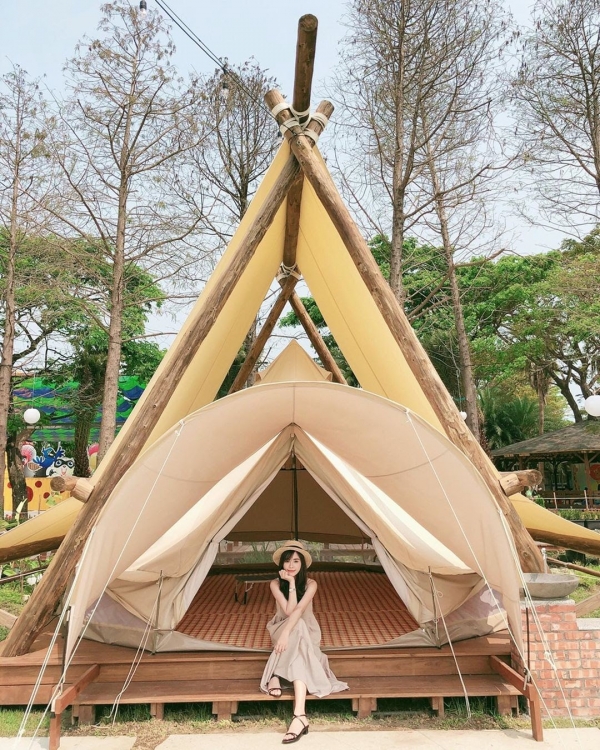 這邊的落羽松草皮搖身變為星空營地,一個個鵝黃色大帳篷與營火圍繞在一起,坐在這邊野餐、看現場表演,且抬頭就能感受飛機起降的震撼感,彷彿在國外度假那樣愜意!