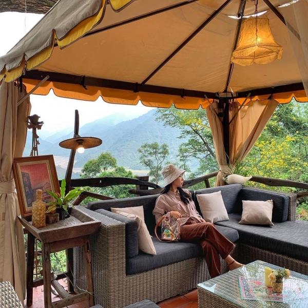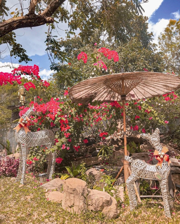 還有一處類似巴里島的涼亭區,絕對是眺望藍天白雲,絕世山景的好地方,旁邊還有懸吊在大樹枝上的鞦韆座椅~