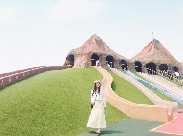 全台第一座火炎山造景公園,園區裡有6米高的磨石子溜滑梯、大型沙坑、戲水池、旋轉飛輪、鳥巢鞦韆、蘑菇屋及攀爬牆等等遊樂設施,根本就是小孩的天堂啊!