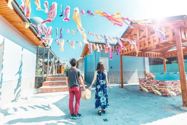 浪漫婚紗聖地!許多人都會專程來這裡拍婚紗,濃濃的日式風味建築搭配繽紛的鯉魚旗,非常適合休假走走看看呢!