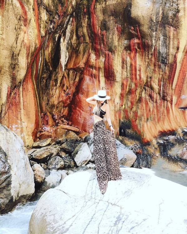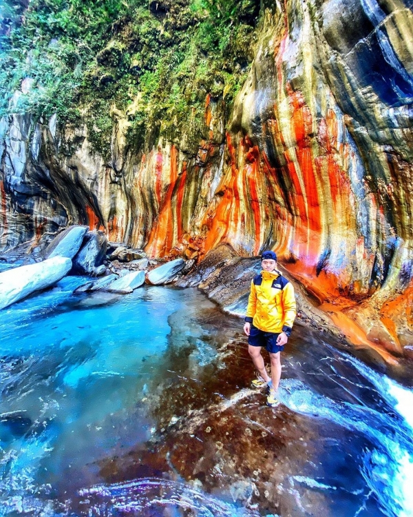 堪稱全台第一野溪秘境的哈尤溪溫泉以七彩岩壁聞名,又稱為雲豹之湯,因岩層富含各種礦物,加上岩壁硫磺的沖刷,呈現紅、黑、黃、白等多種色澤,完美的與壯麗峽谷結合,形成一幅天然山水畫!