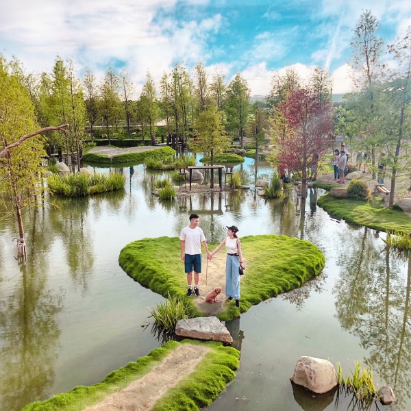 來到這邊就會聯想到日本的兼六園,超美的日式風格庭園景觀,悠閒地漫步在裡面,彷彿置身在日本!這裡最特別的是水池中有著一顆愛心,與心愛的人一起站在上面拍照當作愛情的見證,實在太浪漫啦!