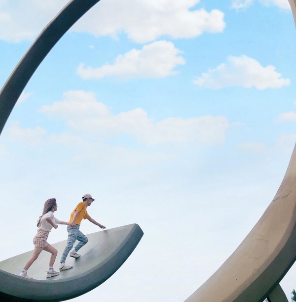 位於桃園lexus汽車廠前的轉角處,有個超特別的裝置藝術,外觀呈現奇特的弧線就像要衝向雲端,故取名為離天堂最近的距離!這邊怎麼拍都非常壯觀啊!