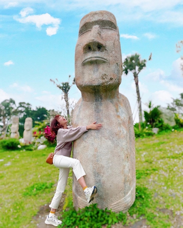 這邊擁有北台灣最大的花海景觀,很適合全家大小一起來玩,園區裡除了賞花及浪漫造景之外,還有超巨大的摩艾石像及摩艾冰棒,拍起來有種呆萌感!因此成為桃園最熱門的踏青去處!