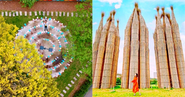 這邊除了賞蓮花之外,也有超可愛的鉛筆迷宮陣!巨大的彩色鉛筆柱子非常繽紛療癒,會讓人為之瘋狂、拍不停!