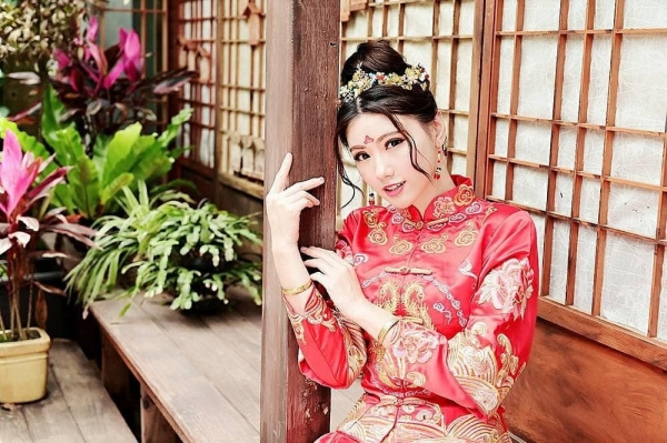 還有純樸感的木質建築可以取景,如果像這樣穿上大紅嫁衣的話也太美,拍起來喜慶卻又不俗氣!現在很多新人除了會挑選唯美的西式白色婚紗之外,也會拍一套復古的紅色嫁衣唷!