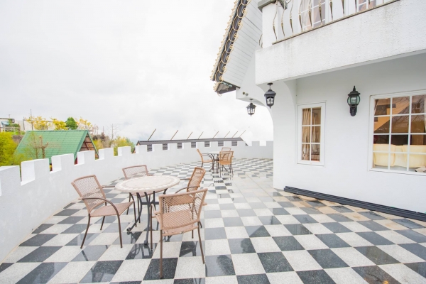 三角造型景觀平台絕對是拍照打卡聖地,宮廷風外觀加上背後山巒環繞,美景盡收眼底,讓人來到這就不想回家了!!!