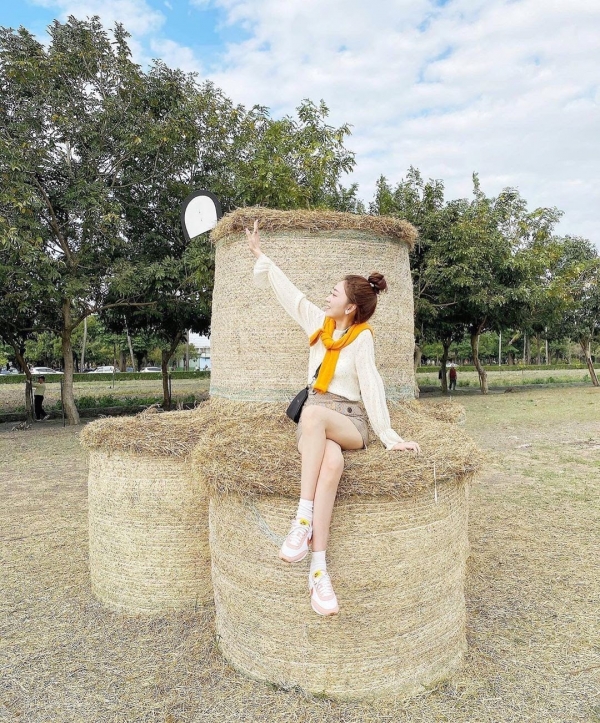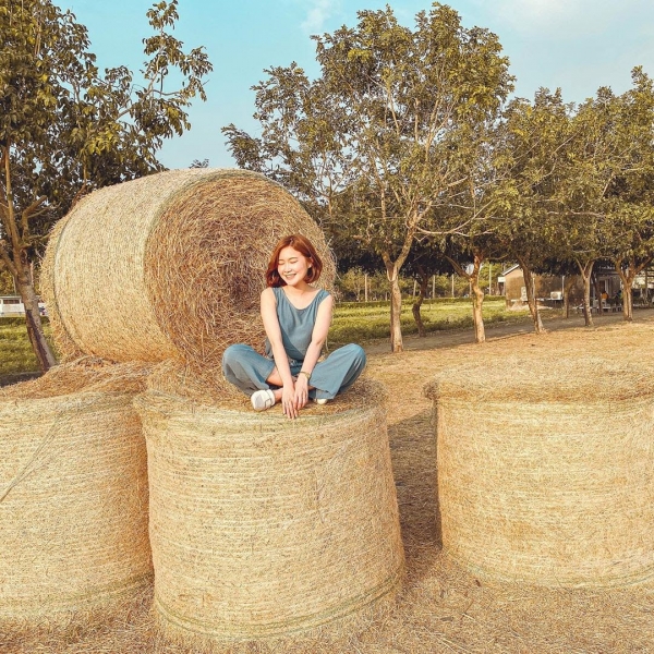 園區內有大片草地、鯉魚潭還有土窯區,大家最喜歡的就是這滾成圓筒狀的牧草堆啦~坐在上面拍照好可愛好療育啊!!!