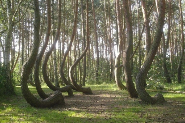 位在波蘭西邊的《彎曲森林(Crooked Forest)》,看起來就如哈利波特中的樹一樣,形狀呈奇怪的鉤子模樣,這個森林裡有大量的樹是彎曲著向上生長,幾乎到了有90度直角彎曲的程度,這個景象光是看圖就讓人覺得很詭異。