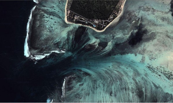 「海底大瀑布」看起來就像是真的瀑布流瀉,其實是海域有太多美麗的漸層色,透過角度拍攝的錯視奇景。
