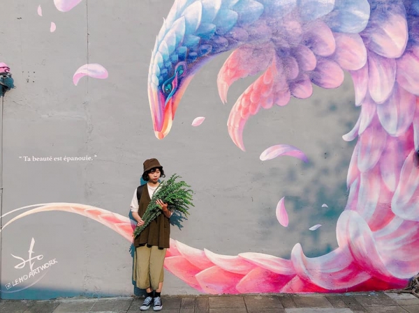 位於台南新天地的特色文創園區,除了著名的3D藍晒圖之外,最近還新增了一幅「穿山甲」彩繪壁畫,其夢幻的漸層色彩加上花瓣的弧度,吸引了許多人前來拍照!