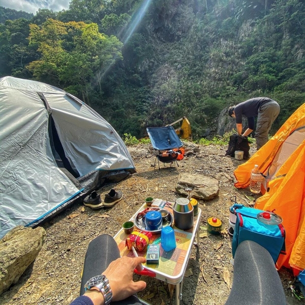 到溪邊大部分的人就是馬上開使紮營啦!!!地盤先搶先贏,弄好住處就可以換上泳衣體驗野溪溫泉囉~不過因為在野溪旁紮營,又在山上,濕度很高,日夜溫差也很大,大家記得要注意保暖喔~