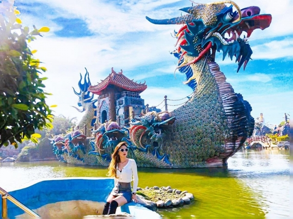 全台首座面積最大的寺廟主題公園就在這!園區裡有許多的蜿蜒小路、奇山異石,還有高達73道關卡約花90分鐘才能走完全程,一路需上坡下坡的,在彩虹橋上還可以將園區所有美景一覽無遺!