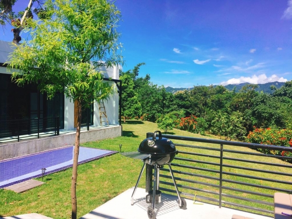 [十三行館]位於台東鹿野鄉一個寧靜的村落裡,以白色為基底外觀,大片落地門窗,能夠一覽無遺大自然的風景,戶外有設置戲水池和烤肉區,另有草地可以露營~
