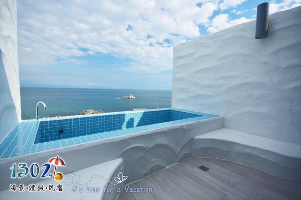 1302海景房最棒的就是,打開窗門就能聽到海的聲音,有獨立陽台可以直擊日昇日落海景,其中vip房型還有獨立泳池,如果玩玩海水回來,還可以再換上泳衣繼續再民宿裡玩水喔!!