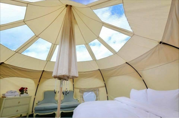 位於左鎮的鹿兒島親子露營園區主打星空帳篷,大大的帳篷頂部是半透明的布幕,白天看出去是藍天綠蔭,到了晚上就變成滿天星斗啦!
