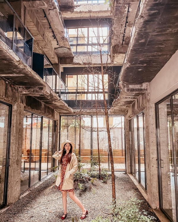 近年來工業廢墟風相當盛行,許多旅館也紛紛朝這方向裝潢設計,而位於中區光復路上的這間旅館本身為一棟廢墟,不僅鋼筋外露、水泥剝落,甚至牆面還凹凸不平,中庭還沒有天花板,費了一番功夫後打造出獨一無二的廢墟旅館,也因此成為ig熱門打卡點!