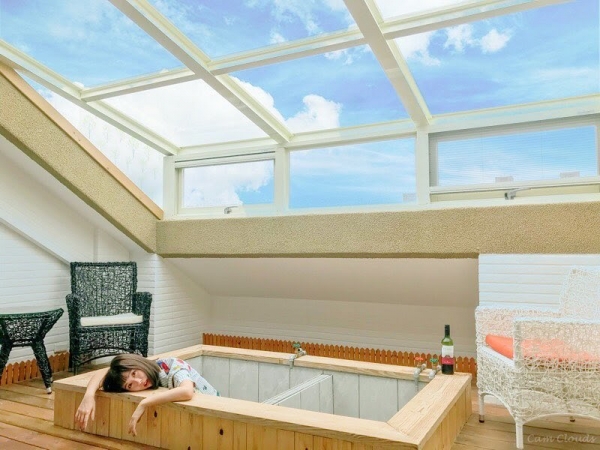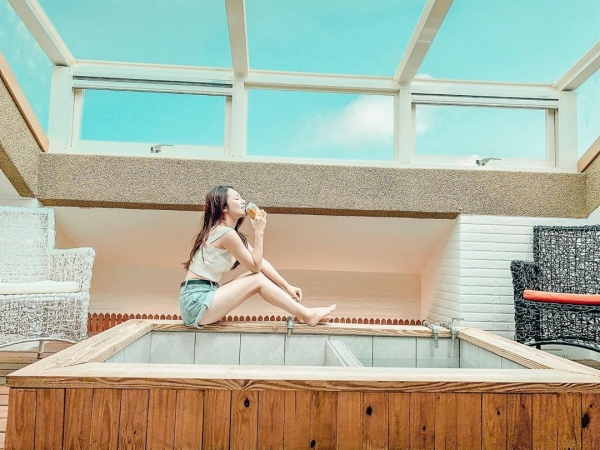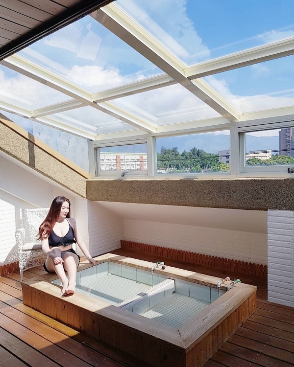 外觀就像一般住家,但一踏進內部才知道風格有多夢幻,每間房型都有屬於自己的風格,其中最受歡迎的就是閣樓型套房「松園別館」了!延伸的露臺上方是整片的玻璃天窗,下方還有個浴缸,白天充足的陽光自然灑落,夜晚群星高照,就像是座完美攝影棚。