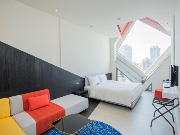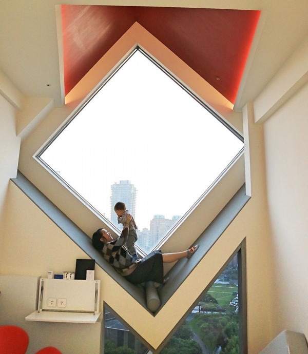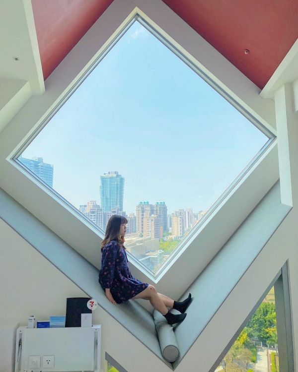 除了位在精華地段,走路就可以到台中人的生活圈-勤美綠園道以外,房間的獨特菱形大窗設計,一直都是飯店最矚目的原因之一,從外觀看就很前衛,到了內部,絕對能讓你大開眼界~
