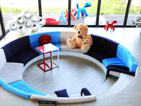 大廳還有一個圓圈下陷式座位區,可以讓小朋友坐在裡面玩,不用怕跑丟了~