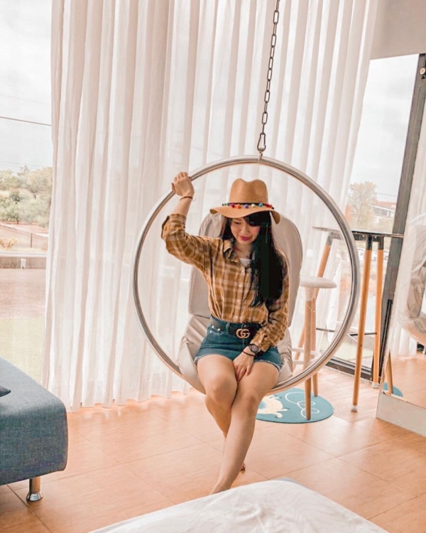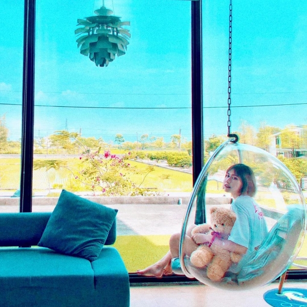水晶泡泡球鞦韆真的是夯到不行,坐在裡面還能眺望民宿外的一片稻田美景,真的好適合去度假~