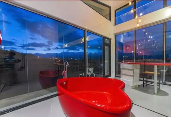 其中一間房型還有超夢幻的大紅色心型浴缸,一旁就是全景落地窗,和心愛的另一半來這裡度假,絕對可以留下最美好的回憶!!