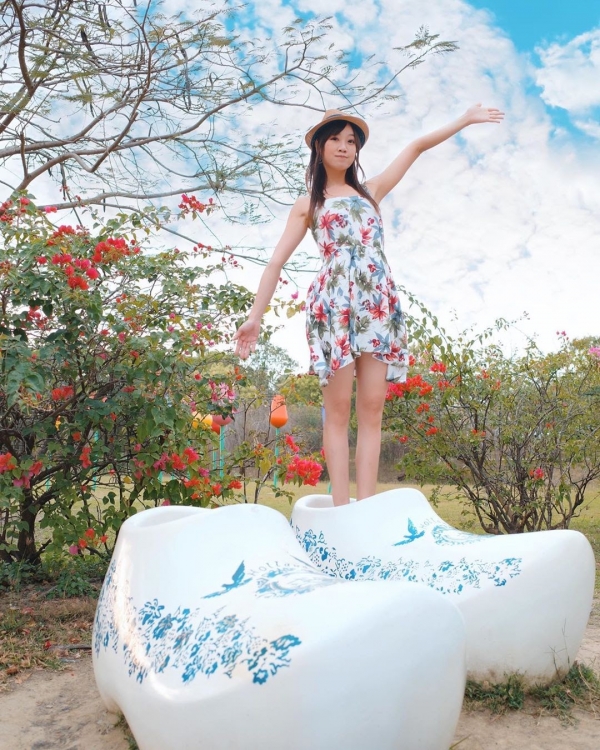 珊瑚狀的埤塘、靜謐的水道、匍匐展開的綠地,圍塑出德元埤樸實的田園景觀,拱橋、穀倉建築、渡船頭及矗立在河岸旁的荷蘭風車,讓人彷彿身處荷蘭,走著逛著還會遇到放大的巨型木鞋及鬱金香,處處都吸引著你按下快門。