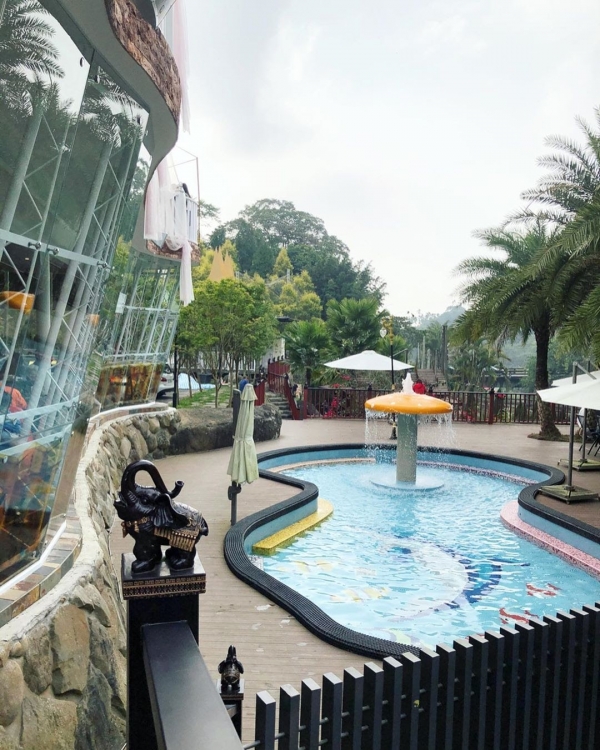 餐廳是由大片落地玻璃建築而成,而頂樓也打造得十分浪漫,一旁還有親子戲水池可以玩水,夏天時就會超級涼爽!還有被叢林包圍的森林吊橋,走在上面彷彿置身在熱帶雨林當中,能夠感受大自然之美!
