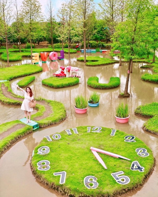每隔一段時間都會變換不同的造景,非常的用心!園區裡有美麗的水上教堂、浪漫池畔、落羽松步道及各式裝置藝術,走在裡面彷彿走進森林裡,能夠感受滿滿山林中的浪漫氛圍!