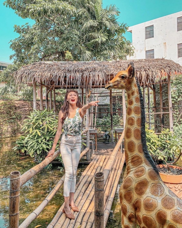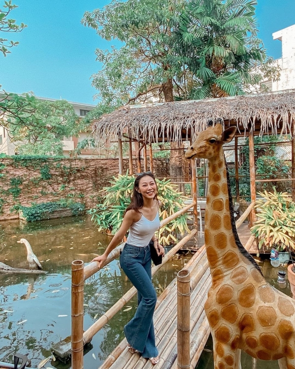隱藏於市區裡的森林系復古風餐廳,一踏進去眼前是綠意盎然的湖畔,中央還有茅草屋及竹編小橋,最吸睛的是還擺放了一隻巨大長頸鹿,所有裝潢設計讓人誤以為來到峇里島度假,因而成為IG上爆紅的打卡點!