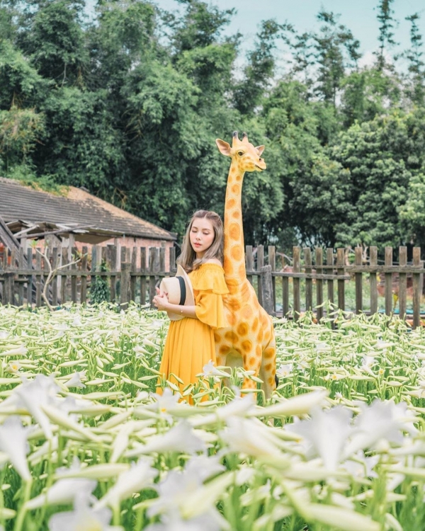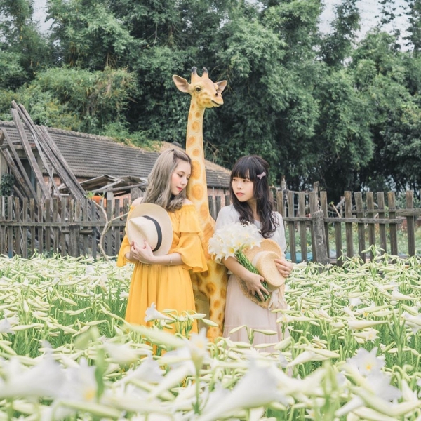 浪漫的純白花海還有一隻長頸鹿作陪襯,讓人彷彿走進花花世界與動物同樂,快趁著周末來這邊拍個美照吧!
