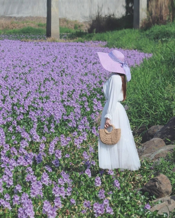 大埤鄉興安、西鎮、北鎮三村位在四條溪流交匯處,因地勢低窪遇水即淹,而後設置了後庄抽水站,形成了一大片濕地,而最近池中開滿了布袋蓮,淡雅紫色的限定花海十分壯觀,吸引了許多攝影玩家來拍照!