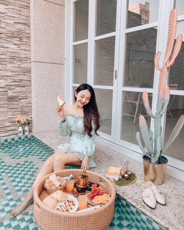 整棟建築都超好拍,三樓還有游泳池,最吸睛的是絕美「漂浮早餐」,讓你有置身國外度假的感覺!