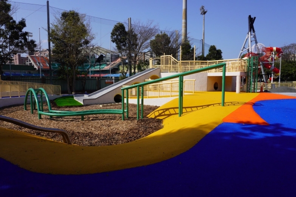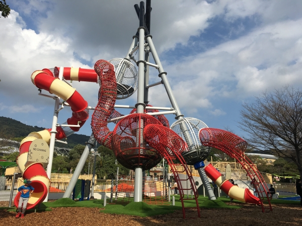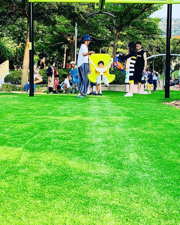 除了棒球溜滑梯之外,還有小孩最愛的沙坑、石子溜滑梯、鳥巢盪鞦韆空中爬網及溜索旋轉遊具等等設施,甚至還有網球場、溜冰場可以使用,更有一片大草坪可以玩樂,根本就是親子天堂!