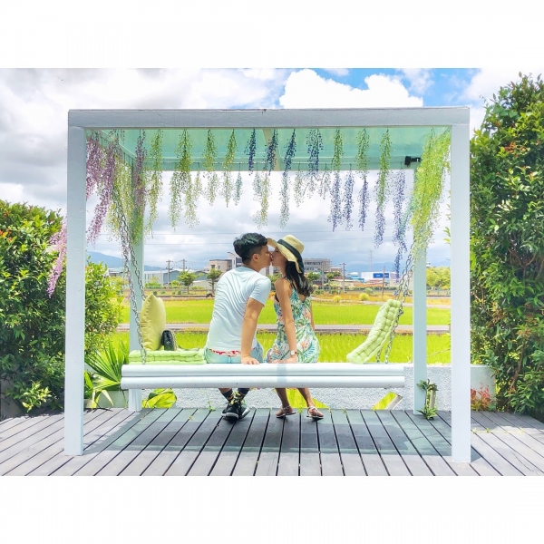 民宿不可或缺的就是周圍的設施以及造景啦~水岸楓林有著純白盪鞦韆,座椅還是木頭一體成形的,剛好符合座位的凹陷~還有另一個純白吊椅,坐在上面可以望向一望無際的稻田,吹著風欣賞美景度過這美好的假期吧~