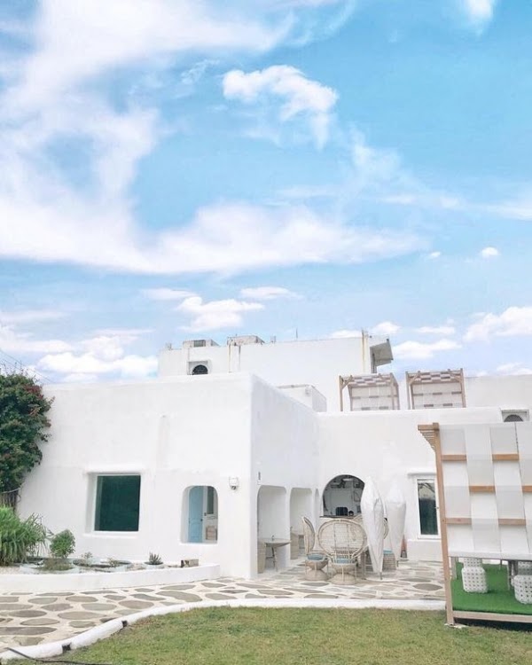 純淨的白,簡簡單單,舒服、無壓,方正結構與圓弧線條相輔相成,像一縷吹自地中海的微風,慵懶而輕柔地撫慰不安的心靈,當陽光灑落,混著清新草香與鹹鹹海水的夏日香氣喚著你清醒,才驚覺這裡不是夢裡的希臘,而是真實存在的墾丁。