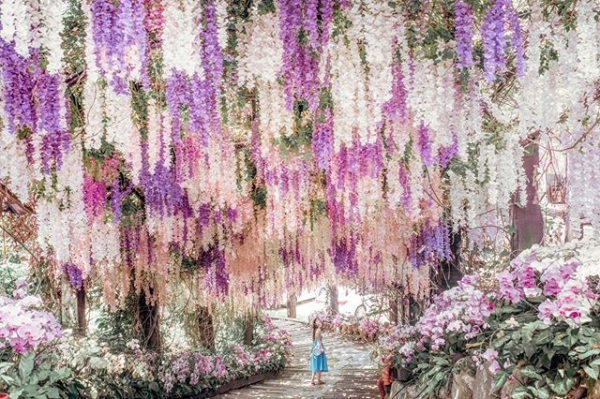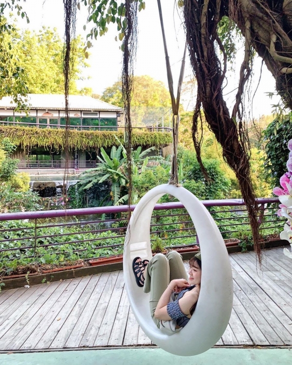 還有不可錯過的月牙鞦韆啦~女友最愛的造景之一,搭配上方的紫藤瀑布,也太浪漫了吧!