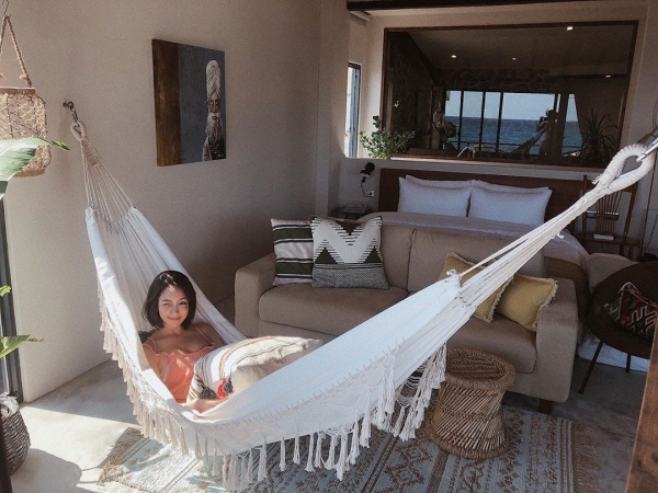 房內還有超夢幻的波西米亞吊床、超大浴缸,可以讓你邊泡澡邊賞窗外的絕美海景,簡直太享受啦!