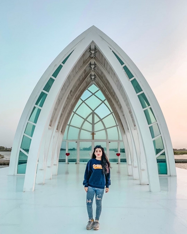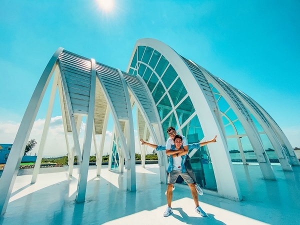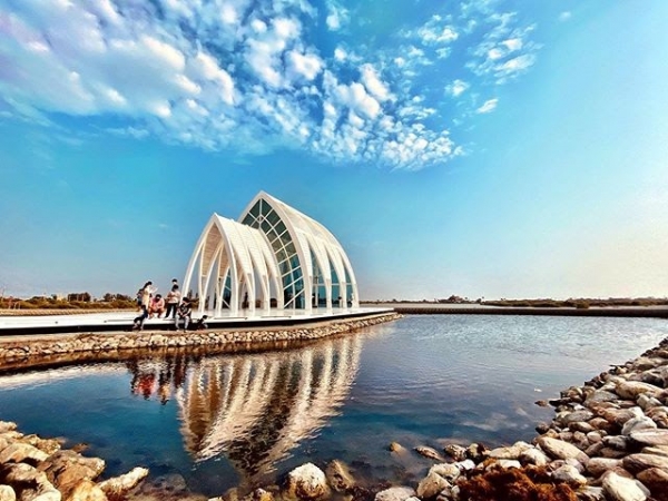 北門遊客中心有超多藝術造景,而最為人知的就是水晶教堂,他是台灣第一座由公家機關設計的教堂,夢幻般的場景是以婚紗攝影為主題,有沒有人正在規畫要求婚的啊?沒辦法出國,就來台南體驗以為置身在關島夢幻景點~