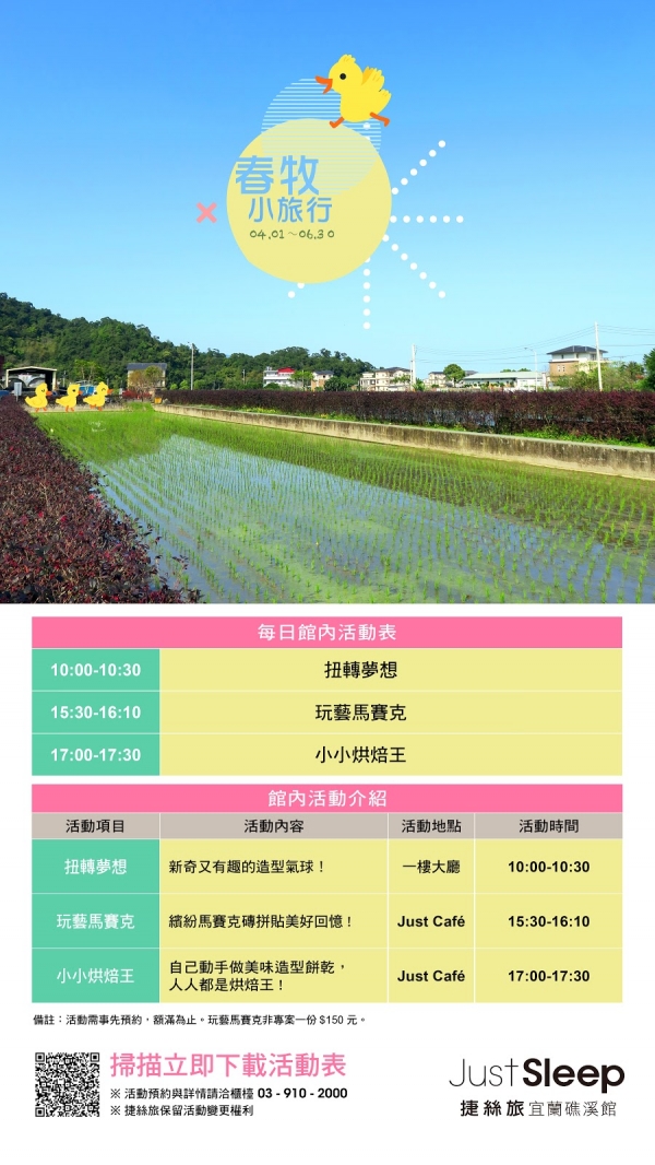 「宜蘭礁溪館」每季提供各類有趣的DIY體驗,適合親子共同參與、共度悠閒、歡樂的旅行時光。