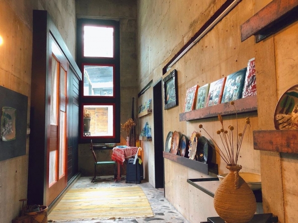 沙漠風情內部充滿著藝術氣息,沒錯,就是老闆布置的,平時由管家整理民宿,老闆可以自由創作,還有藝廊區可以逛,民宿是用清水模為材質,大片的玻璃窗採光良好,也讓整體氛圍明亮了不少!