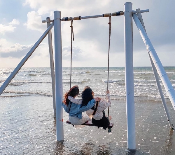 這邊還有一片大大的私人海灘,純白色的鞦韆配上藍天大海,彷彿置身在海島國家度假呢!