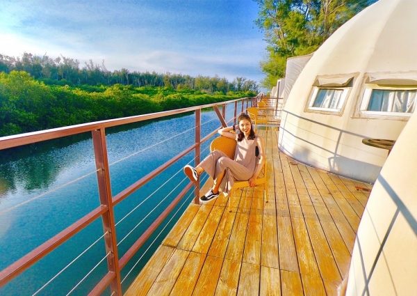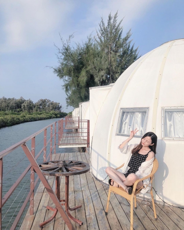 除了漫遊生態森林之外,最吸睛的就是夢幻露營帳篷啦!純白色的外觀可愛又好拍,且房內還能直接看到絕美的湖景,夜晚燈光更是浪漫!