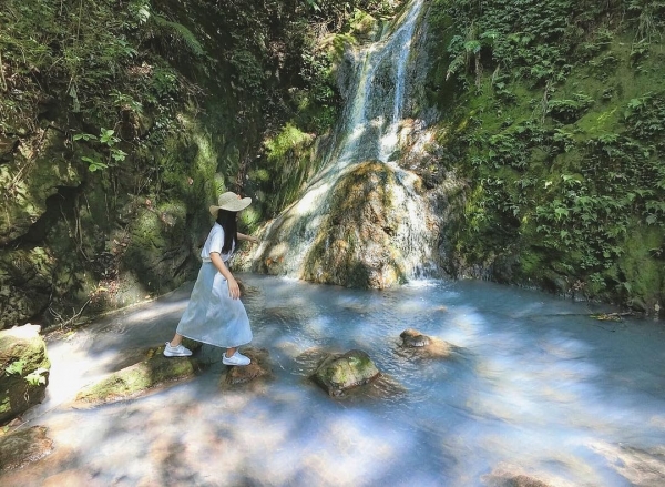 隱藏於陽明山裡的秘境,外頭走進來就能欣賞絕美的冰藍色瀑布,陽光照耀於水面,實在是太夢幻啦,加上樹林茂密的關係也不用怕曬到太陽,夏天來也非常適合唷!
