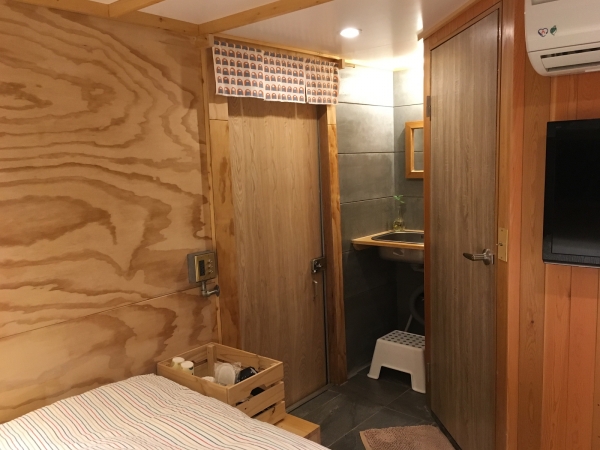 而日式露營車更高級,面湖那扇窗前多了間茶室,外帳也有個客廳平台能夠在這邊野炊、BBQ、坐著放空,享受與大自然的融入與互動!