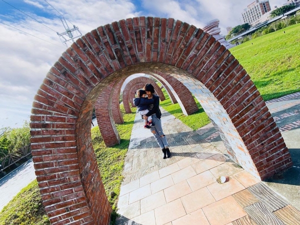 巨大的餐具和製陶工具,是名為「瓷意生活」的大型的裝置藝術,讓人不免停下腳步來欣賞。另一顯眼的就是那塊超大粉紅色陶坯,堆砌而成的藝術感有種夢幻的感覺,重重的紅磚拱門隧道也是很好拍的點!