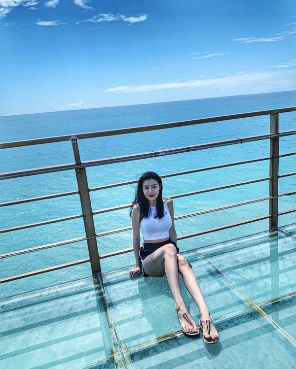 再來就是整棟民宿最吸睛的地方了!走往最底下的有個開放木棧平台,上面有小小透明的天空步道,懸空在斷崖上面,天哪小編看了都心雙腳發軟啦!