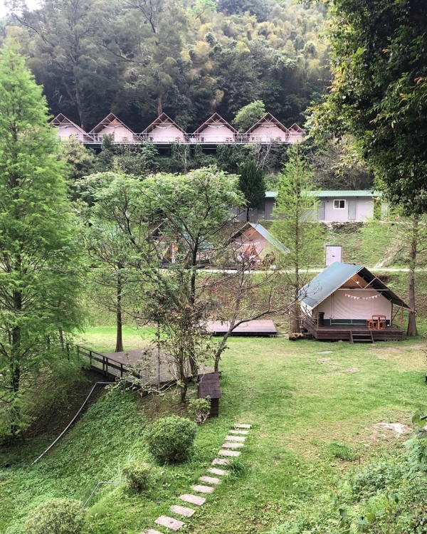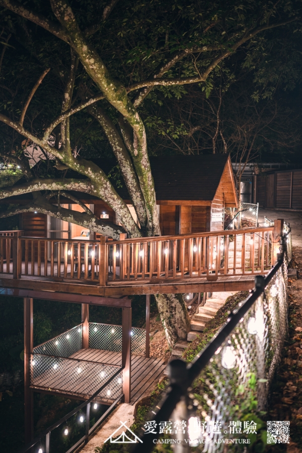 除了常見的帳篷露營以外,還有另外兩個住宿方案可以選擇,皆為比較適合2人入住的房型,森林中居然也能看到合掌屋,還有夢幻點燈的樹屋,浪漫滿分加上森林繚繞,絕對是情侶必住的房型!