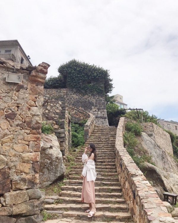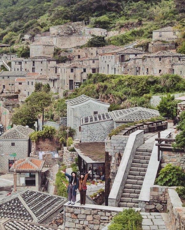 號稱「馬祖地中海」,是馬祖閩東建築最具代表性的聚落,保存極為完整,深受國內外建築、文化和藝術界的青睞!旁邊屋舍為花崗石建築,依山勢呈階梯狀排列,層層相疊,錯落有致,聚落形成半月狀好美呀!